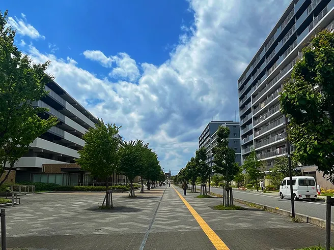 洗練された建物と緑豊かな公園が調和し、清潔感ある街並みが魅力です。道幅も広く車通りが少ないため、安心して過ごせる環境が整っています。 整備された街路や公共スペースが、快適な暮らしを支えます。